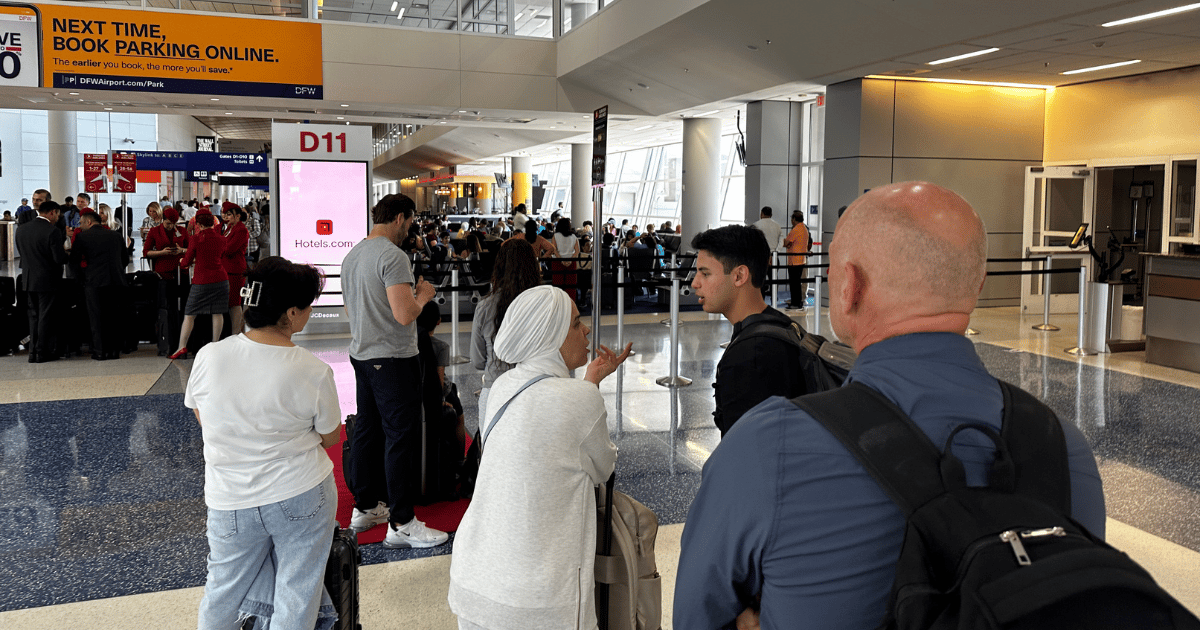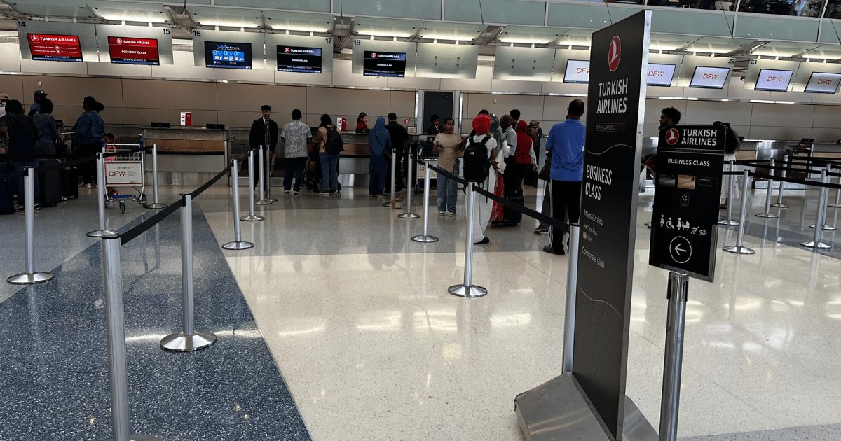 I checked in online 24 hours before my flight, but then got a text from Turkish Airlines indicating I still needed to visit the airport check-in desk for document verification before clearing security. So I arrived at (a very busy) DFW airport just over ninety minutes before our 2:30p scheduled departure time and proceeded to the Turkish Airlines counters.