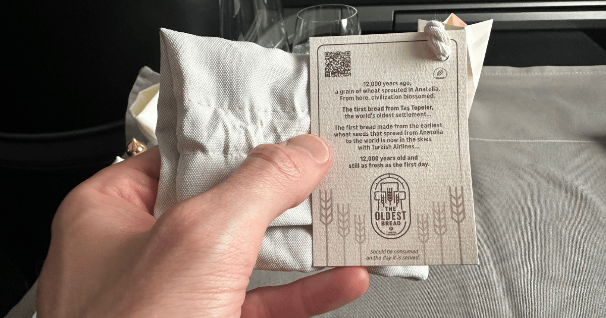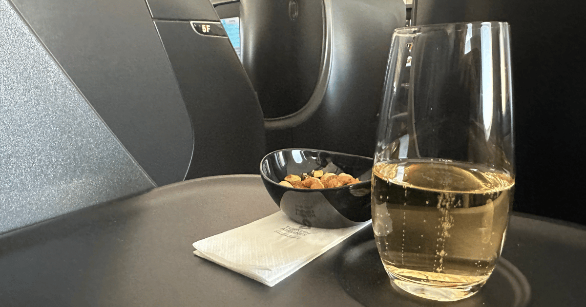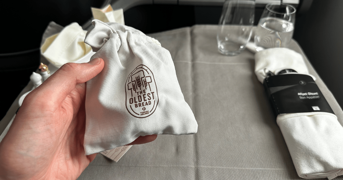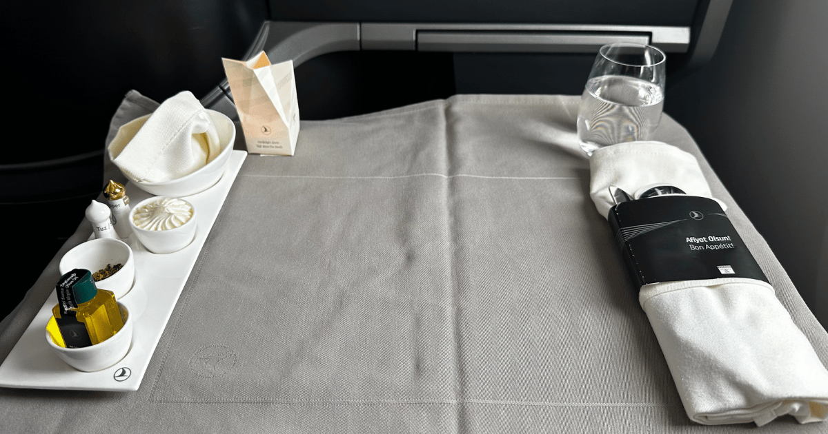 The service began with another round of beverages (I opted for a second glass of Taittinger) plus mixed nuts. While this was being served, the purser came to each business class passenger’s seat to introduce herself and offer a personalized welcome aboard. We had a very nice conversation about my trip to Istanbul, and she made some recommendations for my time in Turkey.