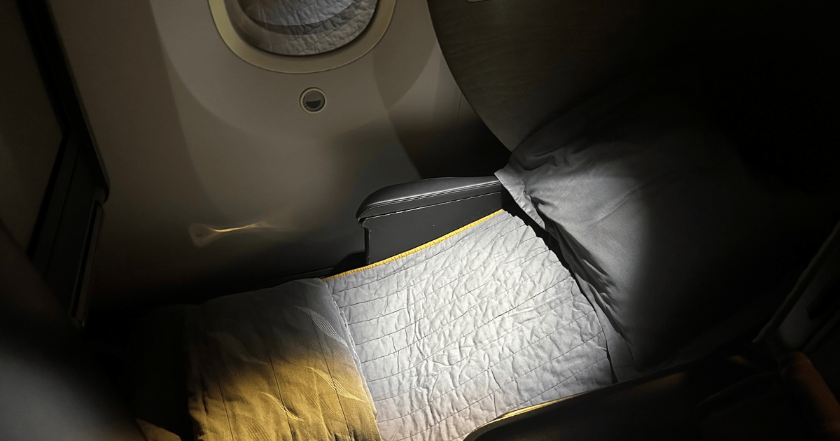 The meal service finished up as we crossed into Canadian airspace, and I continued to work for a while longer before requesting my seat be “turned into a bed” (which never ceases to be cool). The crew was delighted to oblige.