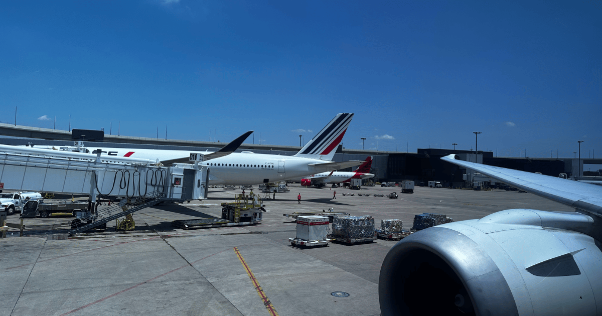 The door closed right at our scheduled departure time of 2:30pm CST, and we pushed back shortly thereafter. I had a great view of the Air France A350 that had just arrived from Paris-CDG at the gate next to ours.